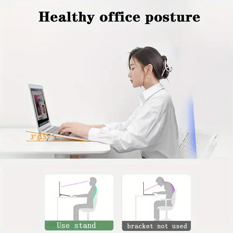 🔔 توفير زاوية مثالية: يمكن أن يوفر لك حامل الكمبيوتر المحمول الصغير هذا زاوية رؤية مريحة وزاوية تشغيل، مما يجعلك دائمًا في حالة استرخاء تام، ويساعدك على تحسين وضعية الجلوس.