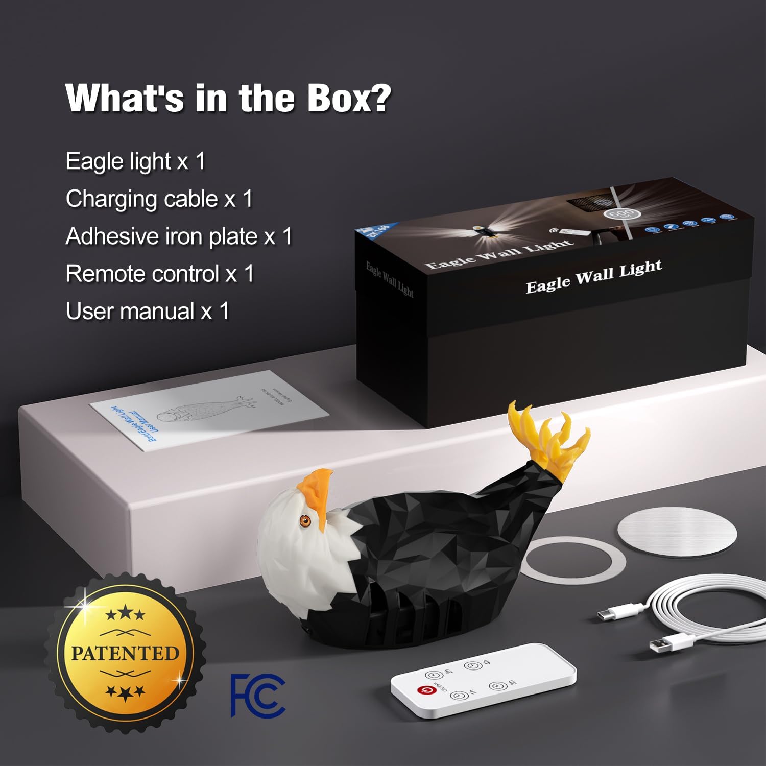 🦅 جهاز تحكم عن بُعد وإطفاء مؤقت للضوء: استخدم جهاز التحكم عن بُعد المرفق للتحكم في الإضاءة. شغّل وأطفئ ضوء النسر بسهولة، واضبط مؤقتًا لإطفاء الإضاءة الليلية تلقائيًا بعد ساعة إلى أربع ساعات. استمتع بتجربة إضاءة مثالية مصممة خصيصًا لاحتياجاتك.