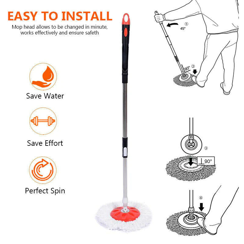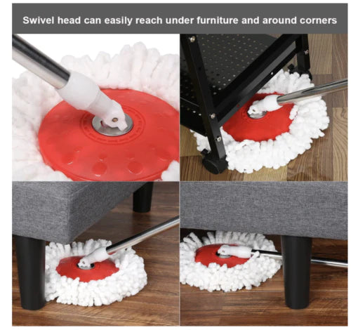 - توفر ممسحة 360° Elegant Spin Mop ممسحة فائقة الامتصاص يمكنها مساعدتك في الوصول إلى جميع المناطق الصعبة في المنزل مثل أسفل الثلاجة والحمام والزوايا الأخرى.