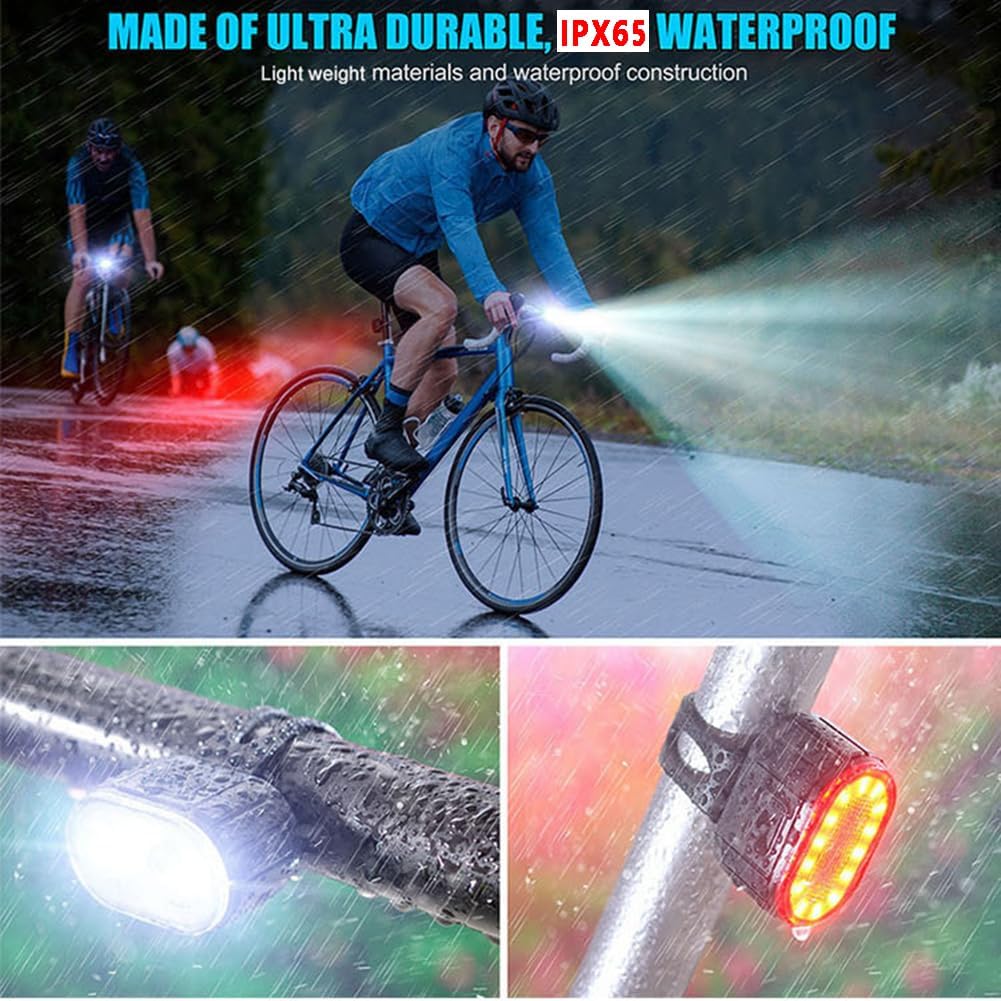 💧 مقاوم للماء IPX65 - بفضل مستوى مقاومة الماء IPX65، يعمل مصباح الدراجة هذا بكفاءة في الأيام الممطرة أو الضبابية، مما يتيح لك الاستمتاع برحلتك. منفذ USB مزود بغطاء سيليكون مقاوم للماء يمنع دخول الماء بفعالية ويطيل عمره الافتراضي.