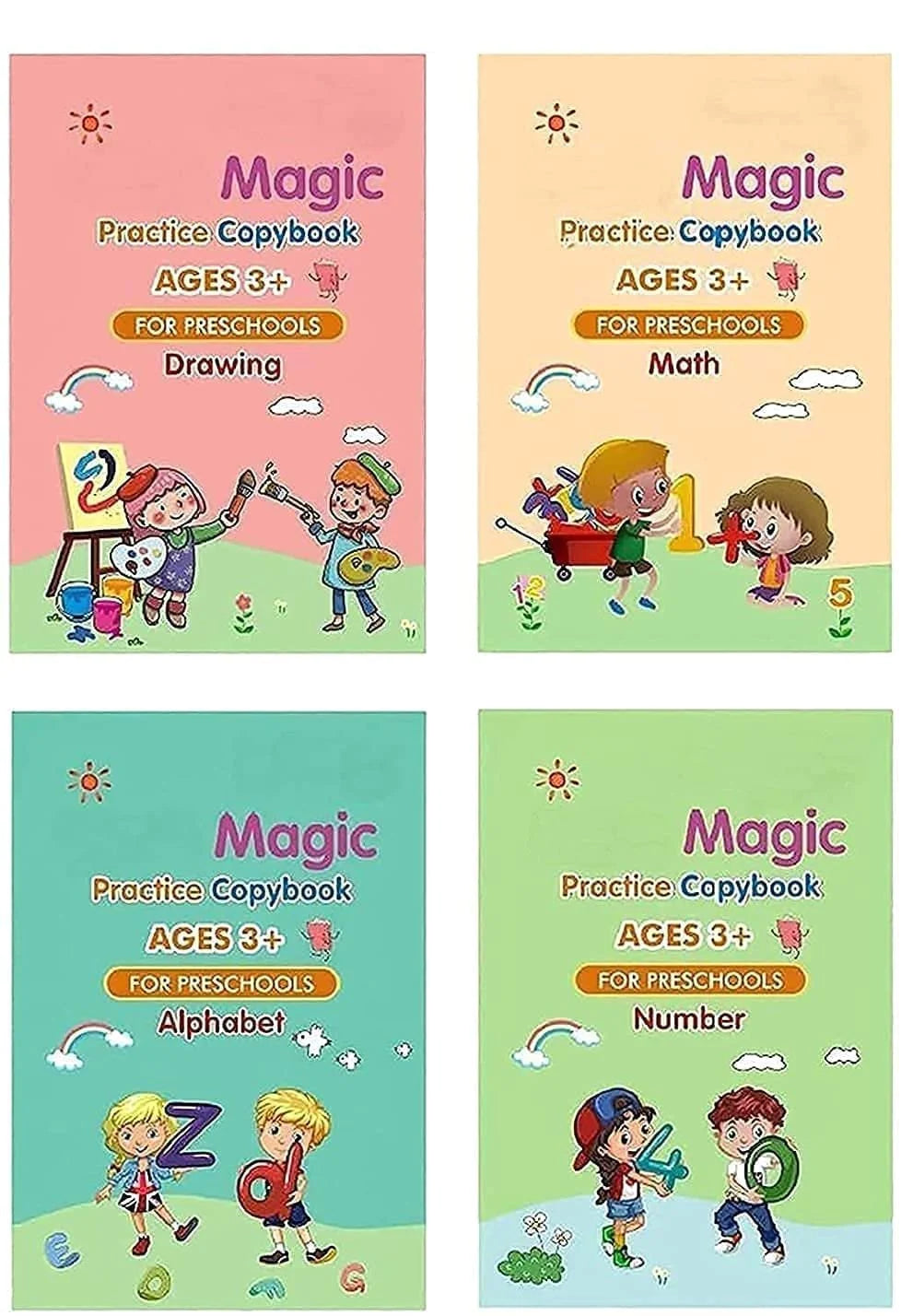كتاب سحري للأطفال (4 كتب مع قلم)