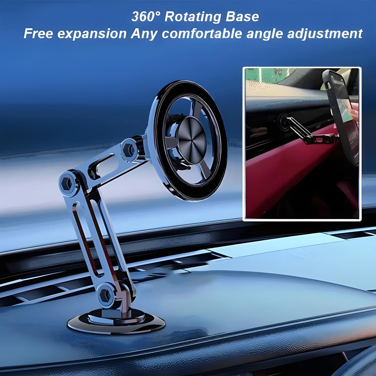 دوران حر 360 درجة: يتميز حامل 360 درجة برو بقبضة مغناطيسية قوية تُثبّت الهاتف في مكانه حتى على الطرق الوعرة. تتيح لك ميزة الدوران 360 درجة وتعديل الزاوية العثور بسهولة على الزاوية المثالية للمشاهدة بدون استخدام اليدين، مما يُكمل أي تصميم داخلي للسيارة بمظهره الأنيق.