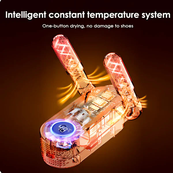 استمتع بدرجة حرارة ثابتة ذكية عند 42 درجة مئوية، مما يسمح للهواء الساخن بالدوران داخل حذائك. هذه العملية تزيل الرطوبة بكفاءة، وتترك حذائك جافًا وناعمًا ومريحًا دون أي ضرر.