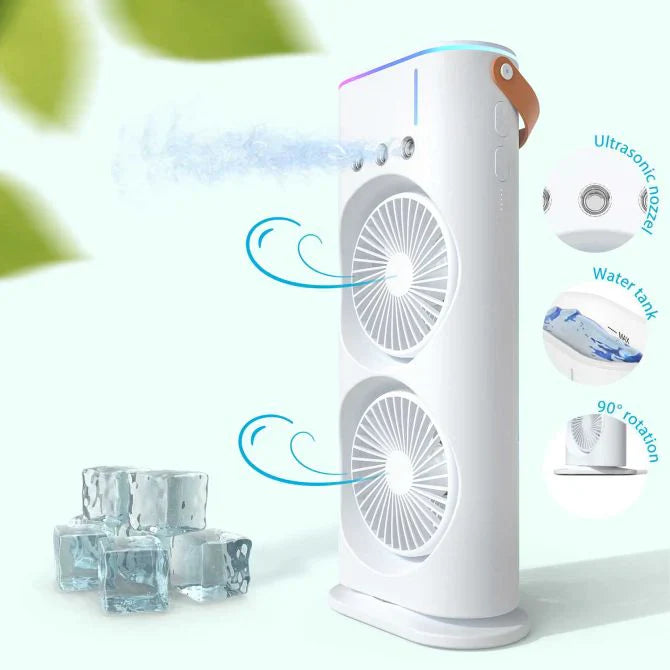✅مروحة ضباب مزدوجة خفيفة الوزن وصغيرة الحجم وقابلة لإعادة الشحن ومحمولة بالكامل.