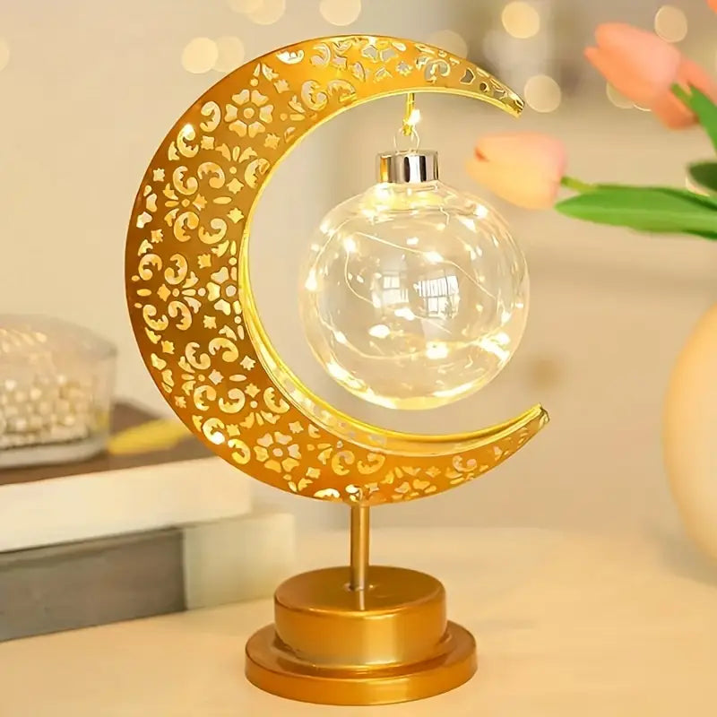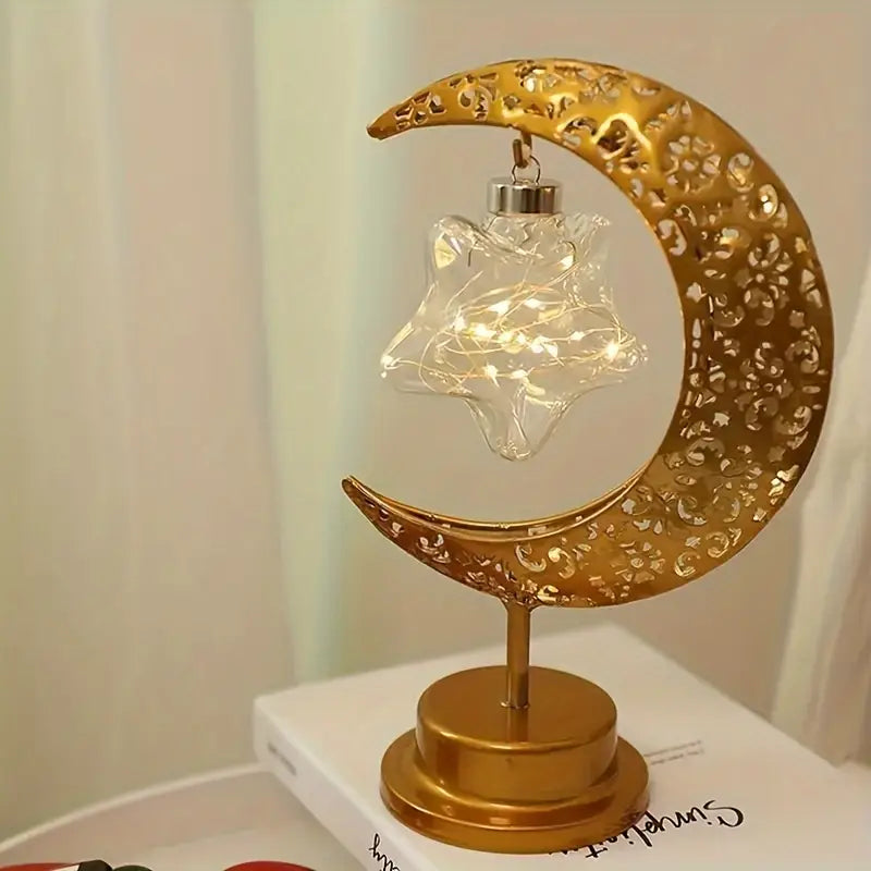 مصباح طاولة حديدي على شكل قمر ونجمة رمضان - أضئ لياليك