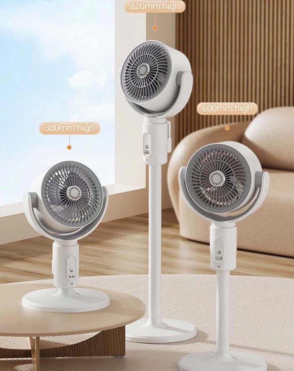 ❤【 ارتفاع قابل للتعديل و5 أوضاع للرياح 】: يمكن لمروحة دوران الهواء الأرضية هذه التبديل بين ارتفاعات 14.2 بوصة، 20.5 بوصة، 27.2 بوصة، و33.9 بوصة. توفر هذه المروحة الرأسية خمسة أوضاع للرياح: منخفضة، متوسطة، عالية، رياح قوية، ورياح طبيعية دائرية، مما يتيح لك الاختيار وفقًا لاحتياجاتك المختلفة. (ملاحظة: تشير الرياح الطبيعية الدائرية إلى دورة متناوبة من سرعة الرياح البطيئة إلى السريعة).