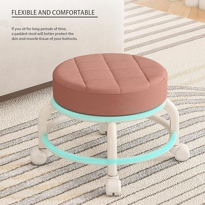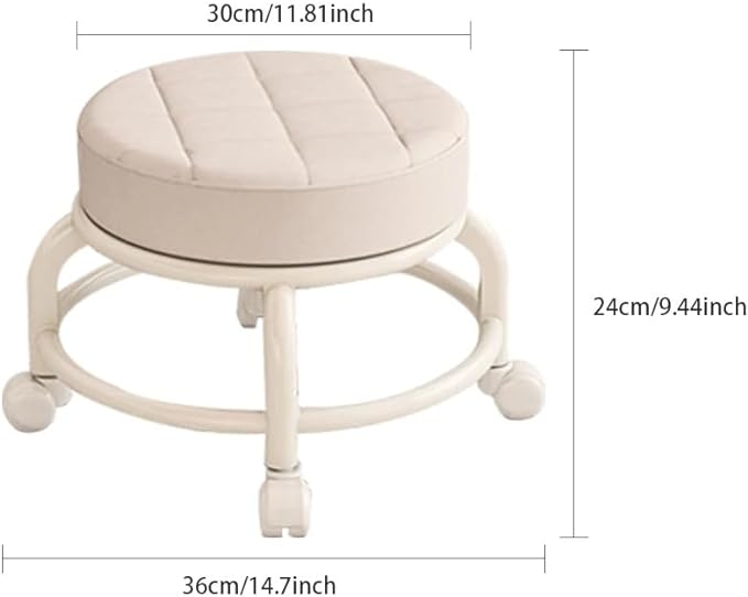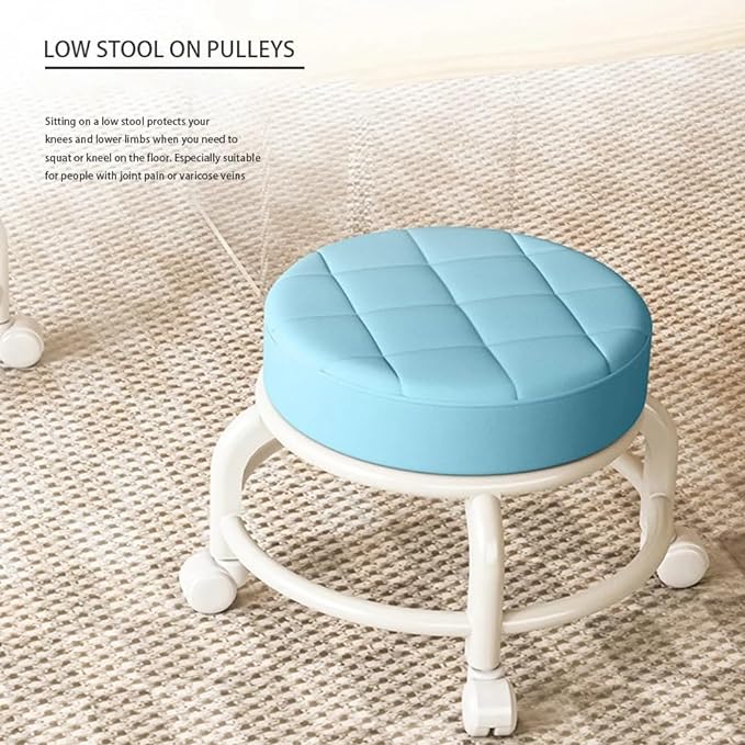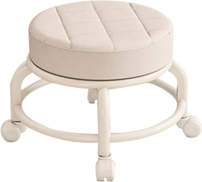كرسي دوار ببكرة مستديرة، كرسي منخفض، كرسي منزلي من الجلد، عجلة عالمية دوارة 360 درجة، كرسي ناعم متحرك، كرسي صغير لتغيير الأحذية