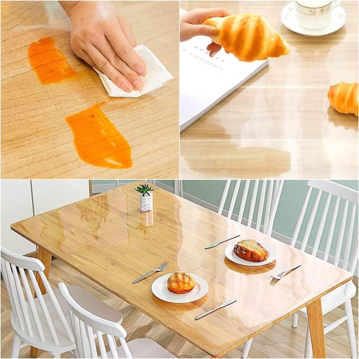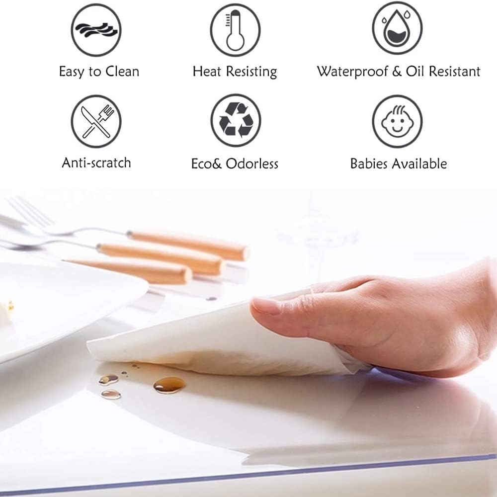 🔔【سهلة التنظيف】: سجادة الطاولة الشفافة المقاومة للماء سهلة التنظيف للغاية. ما عليك سوى مسح سطح الطاولة المصنوع من الفينيل بقطعة قماش مبللة، ويمكنك مسح جميع الأوساخ على السطح.