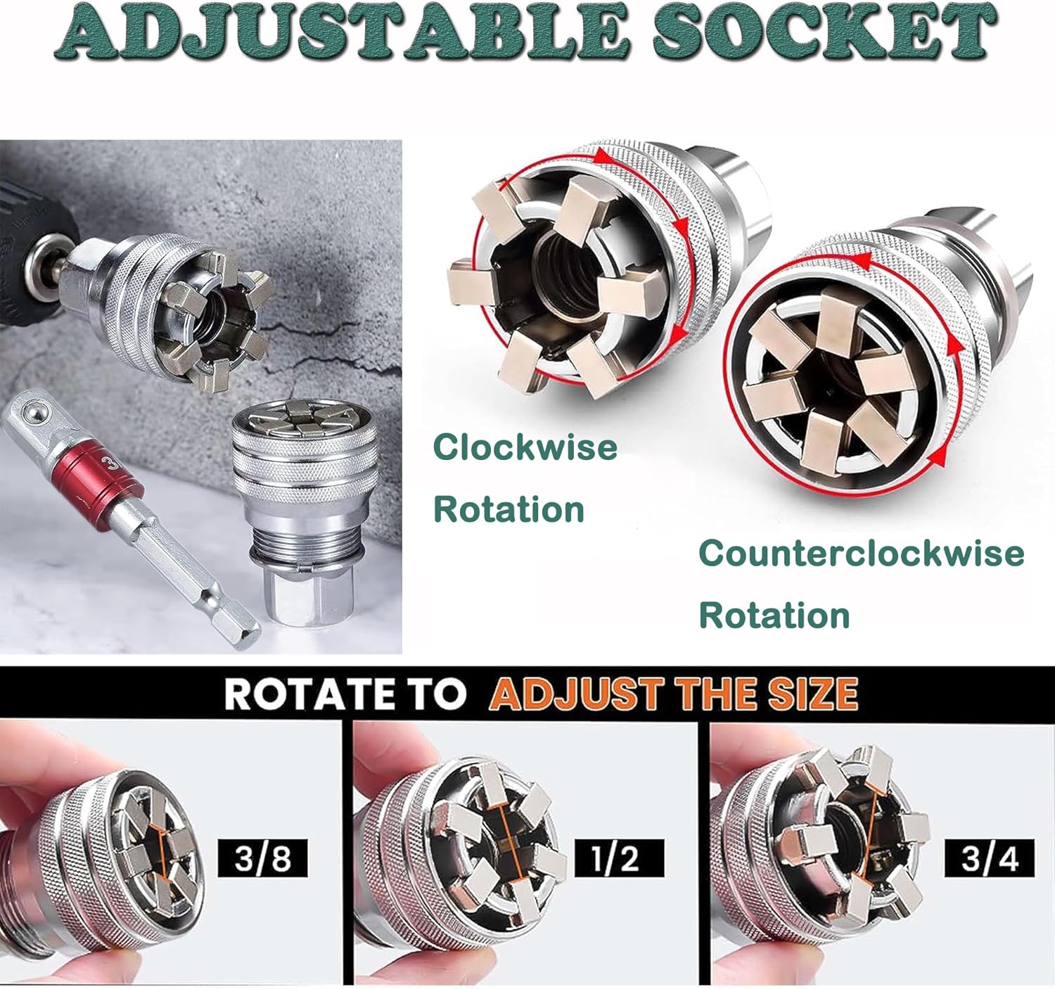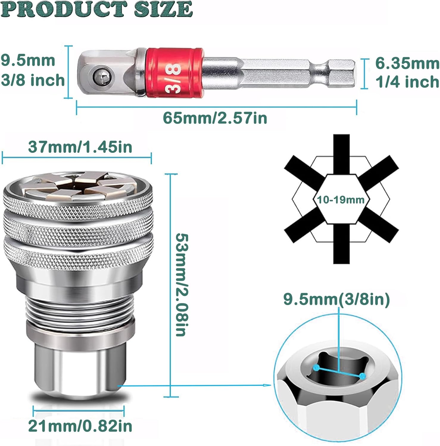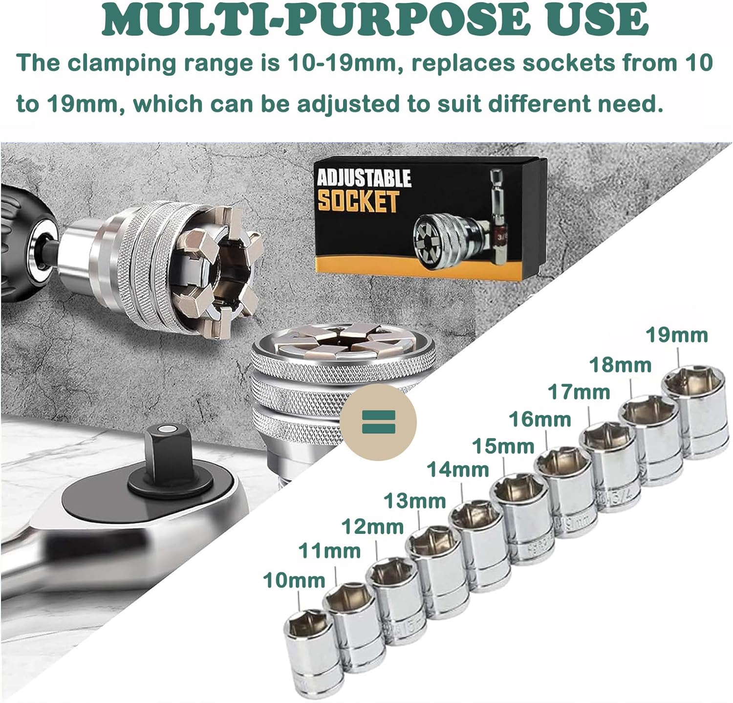✅ Adjustable socket - the clamping range of the socket is 10-19mm (3/8-3/4inch), which can clamp most screws, nuts, and bolts. You can adjust the size to meet your needs.