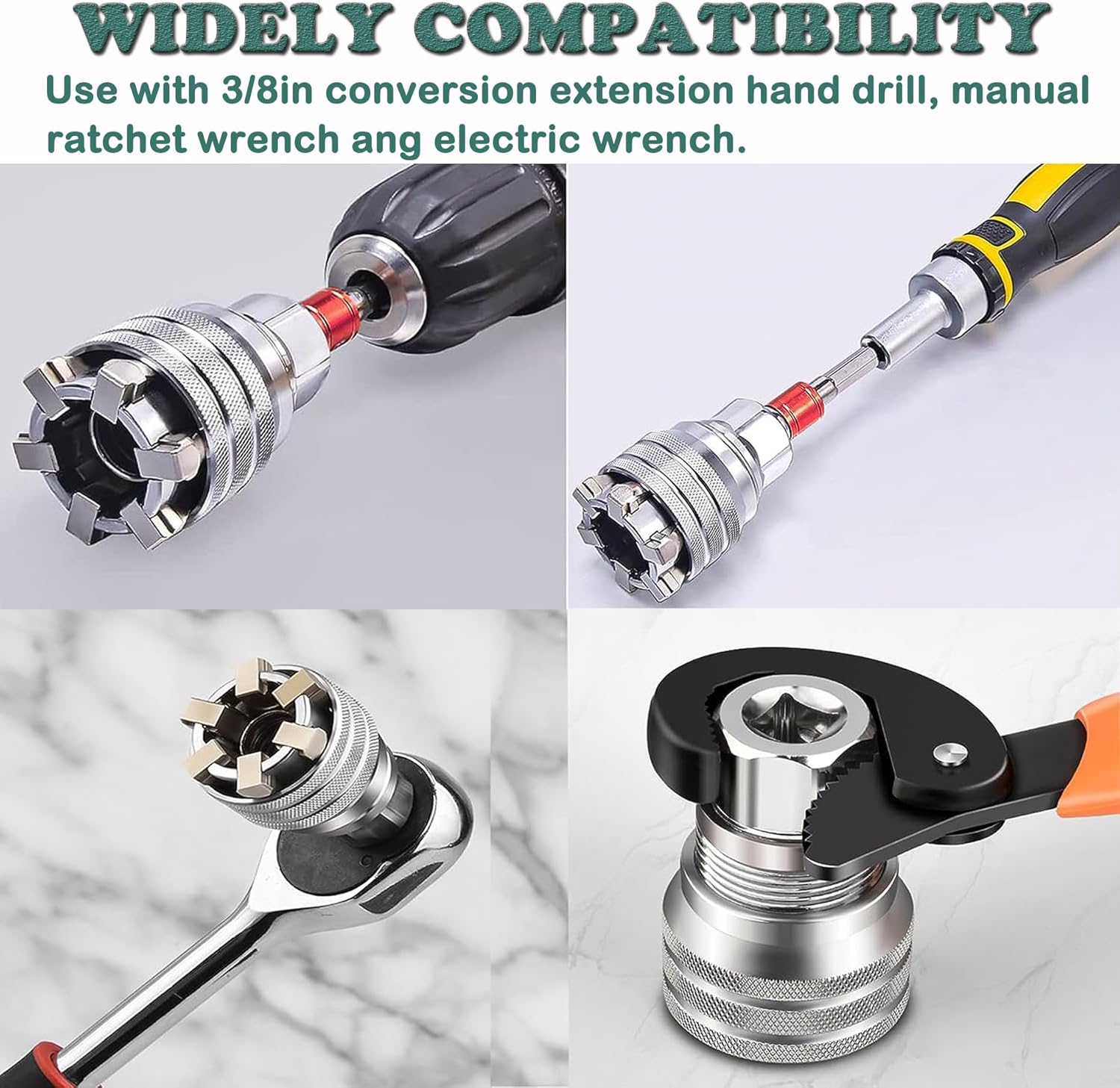✅ Easy to use - the socket can be used with a 3/8" ratchet wrench or breaker bar, an adjustable spanner, and can be attached to a power drill using a 3/8" socket adapter.