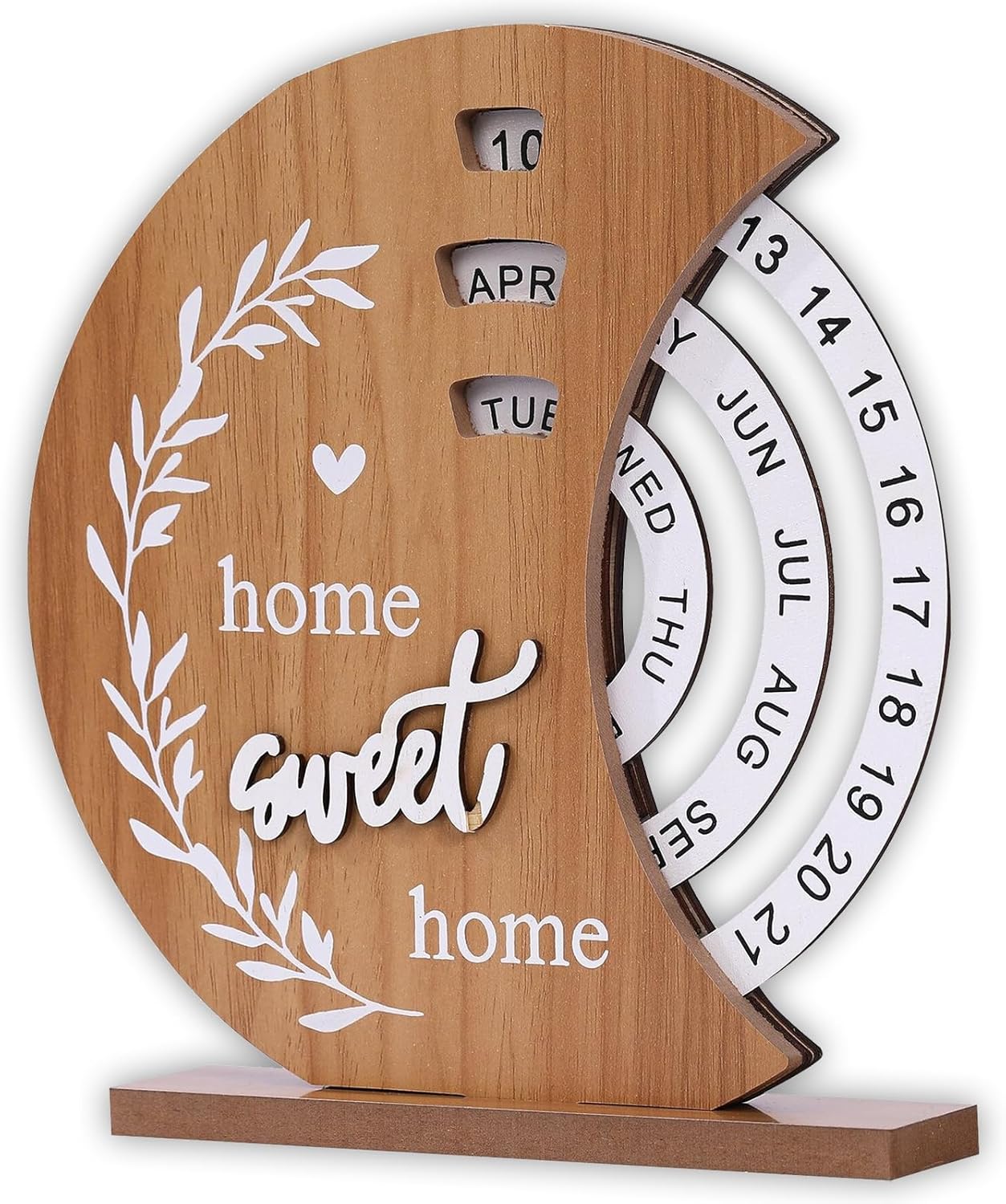 🌙[سهل الاستخدام]: التقويم الخشبي سهل التركيب للغاية: ما عليك سوى إدخاله في القاعدة وتثبيته بإحكام على الطاولة لتزيينه. أدر القرص لتغيير التاريخ والشهر والأسبوع بسهولة.