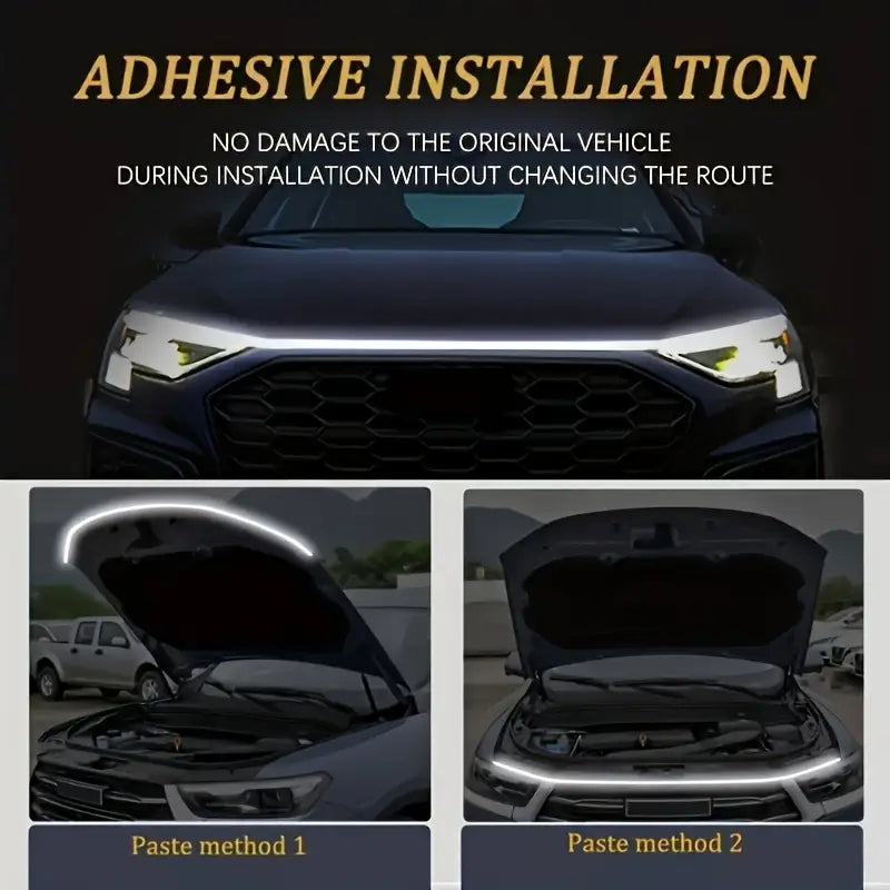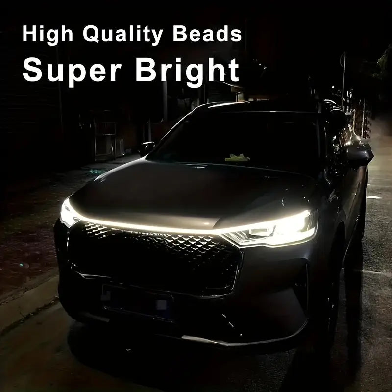🔆Versatile Use Across Different Applications: The 150cm LED light strip is designed to fit a wide range of cars and is compatible with most 12V vehicles. It can be used for various purposes, such as car hood lights, car door lights, turn signals, and daytime running lights.