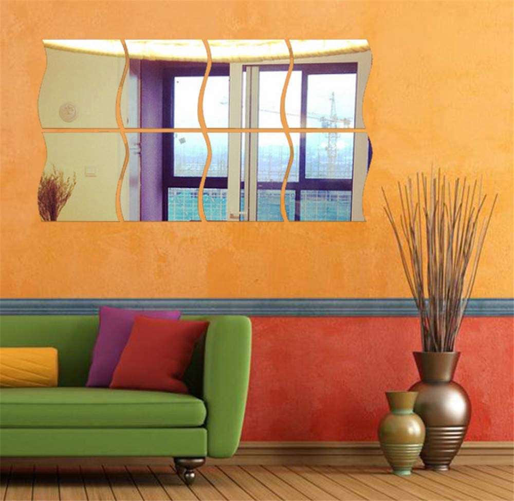 3D Wavy Mirror Wall Stickers, 8PCS Mirror Art DIY Home Decorative Acrylic Mirror Wall Sheet Plastic Tiles