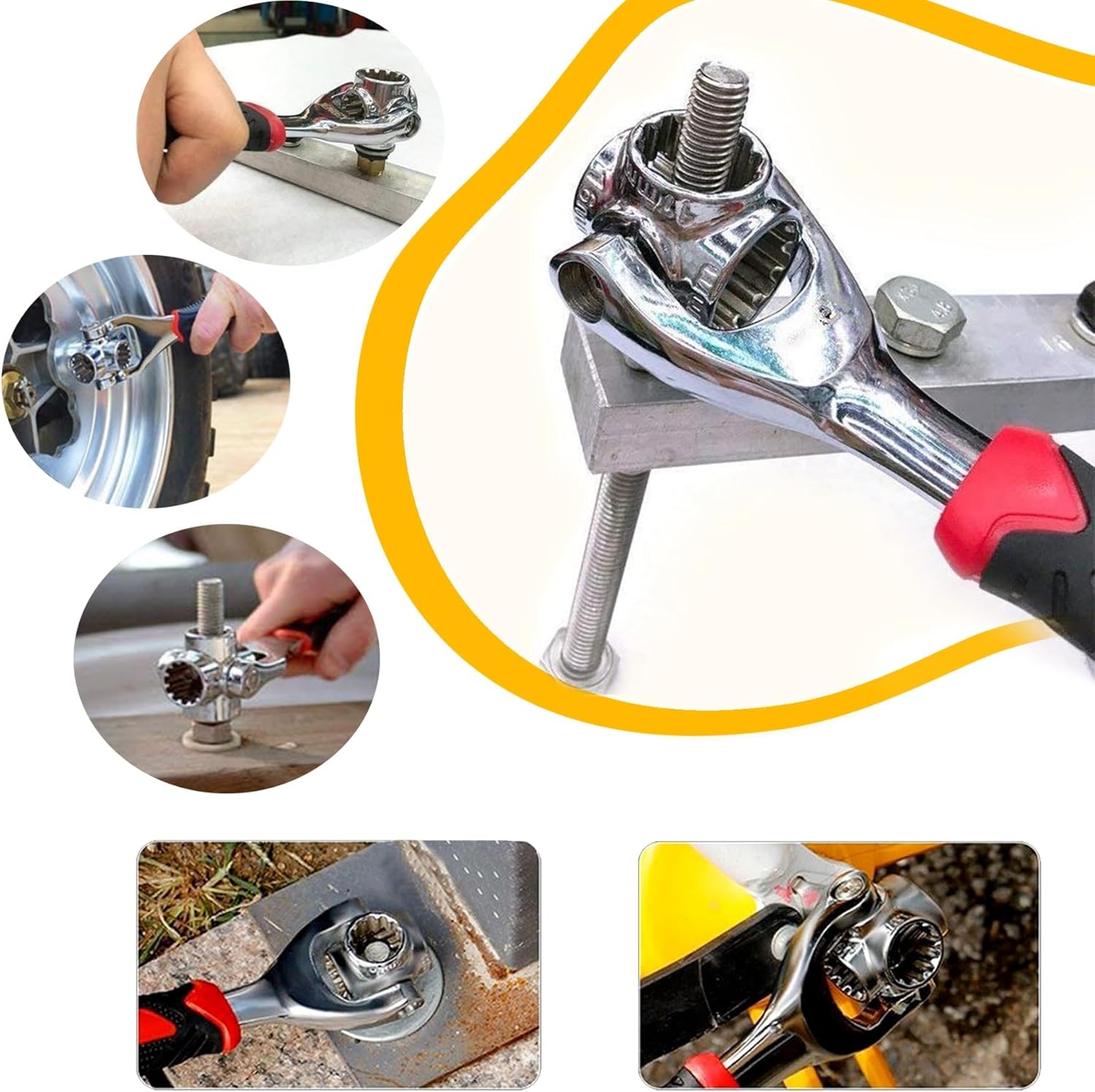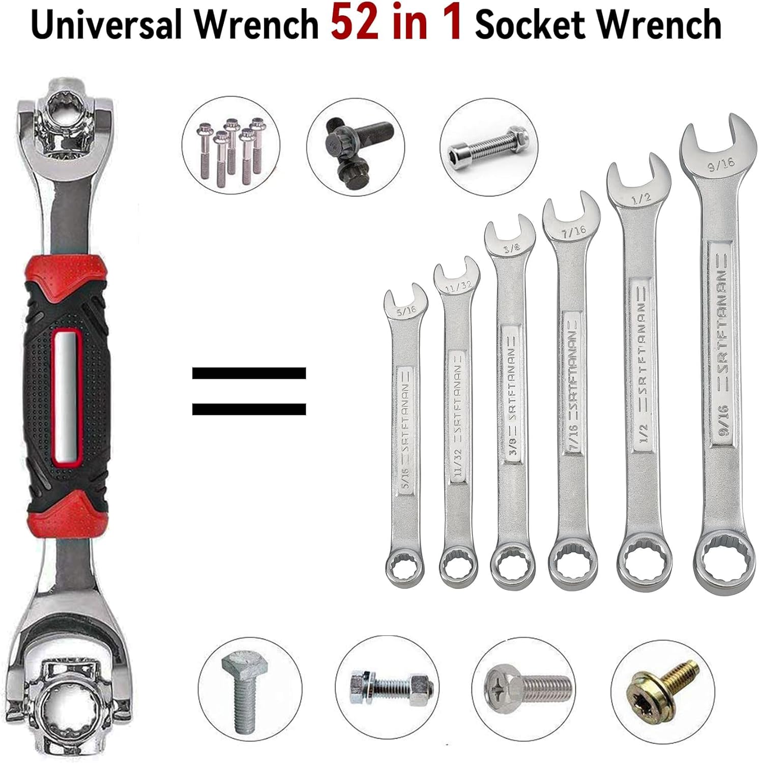 🛠️【52 in 1 Universal Socket Spanner Wrench】: This multifunction wrench tool eliminates the need for multiple wrenches. It grips all types of nuts and bolts and easily switches between standard and metric sizes. Perfect for various jobs without lugging around heavy toolboxes.