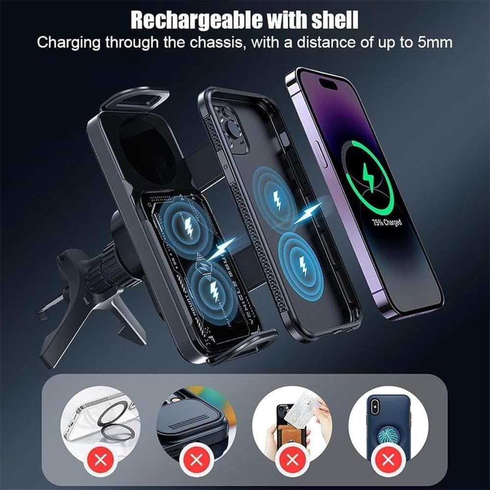 ⚡ 15W FAST WIRELESS CHARGING: Equipped with dual-coil technology, the holder offers 15W fast charging for devices larger than 5.9 inches, ensuring your phone stays powered up while on the road.
