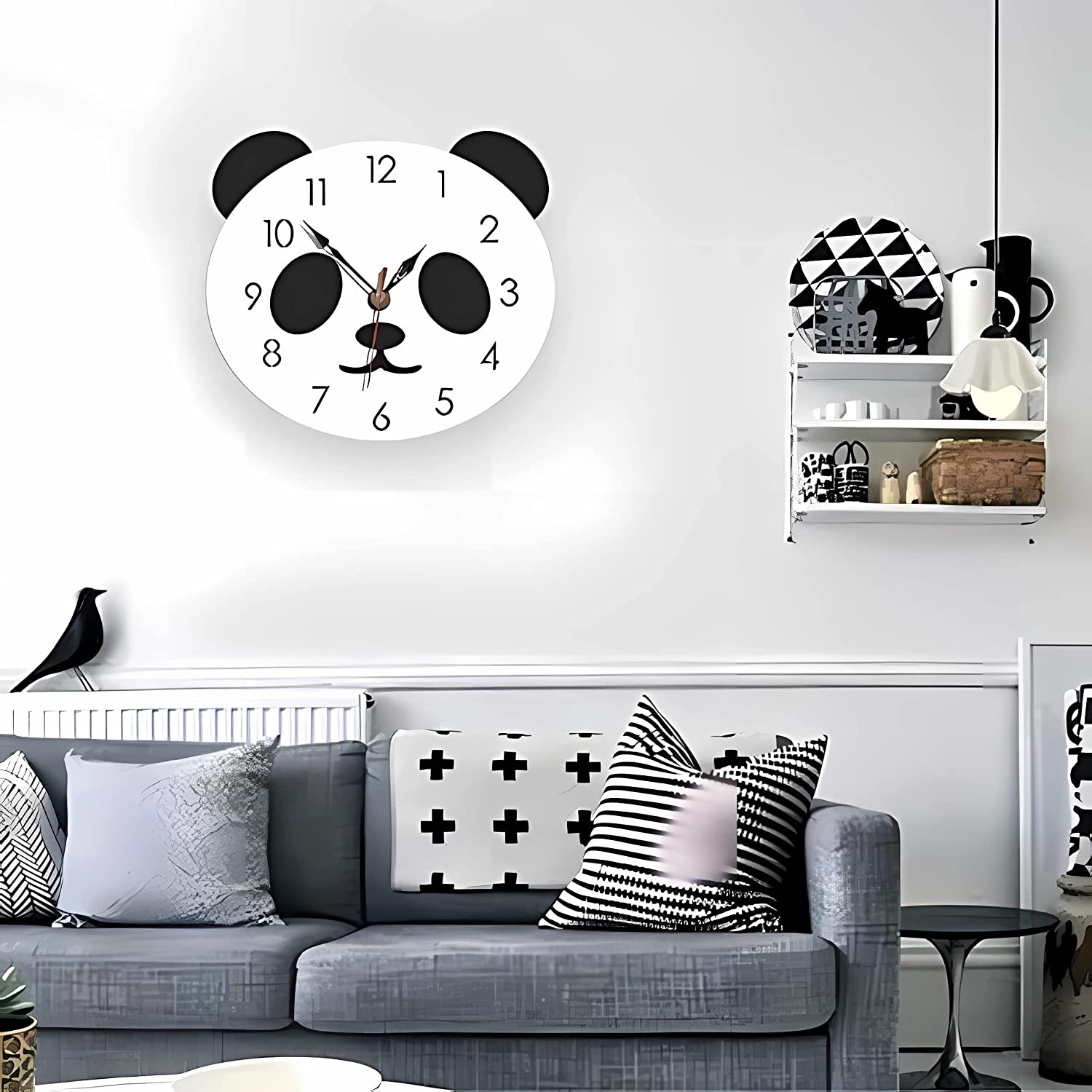 - Introducing the Cheerful Panda Wall Clock, a delightful and vibrant addition to your kid's room decor.