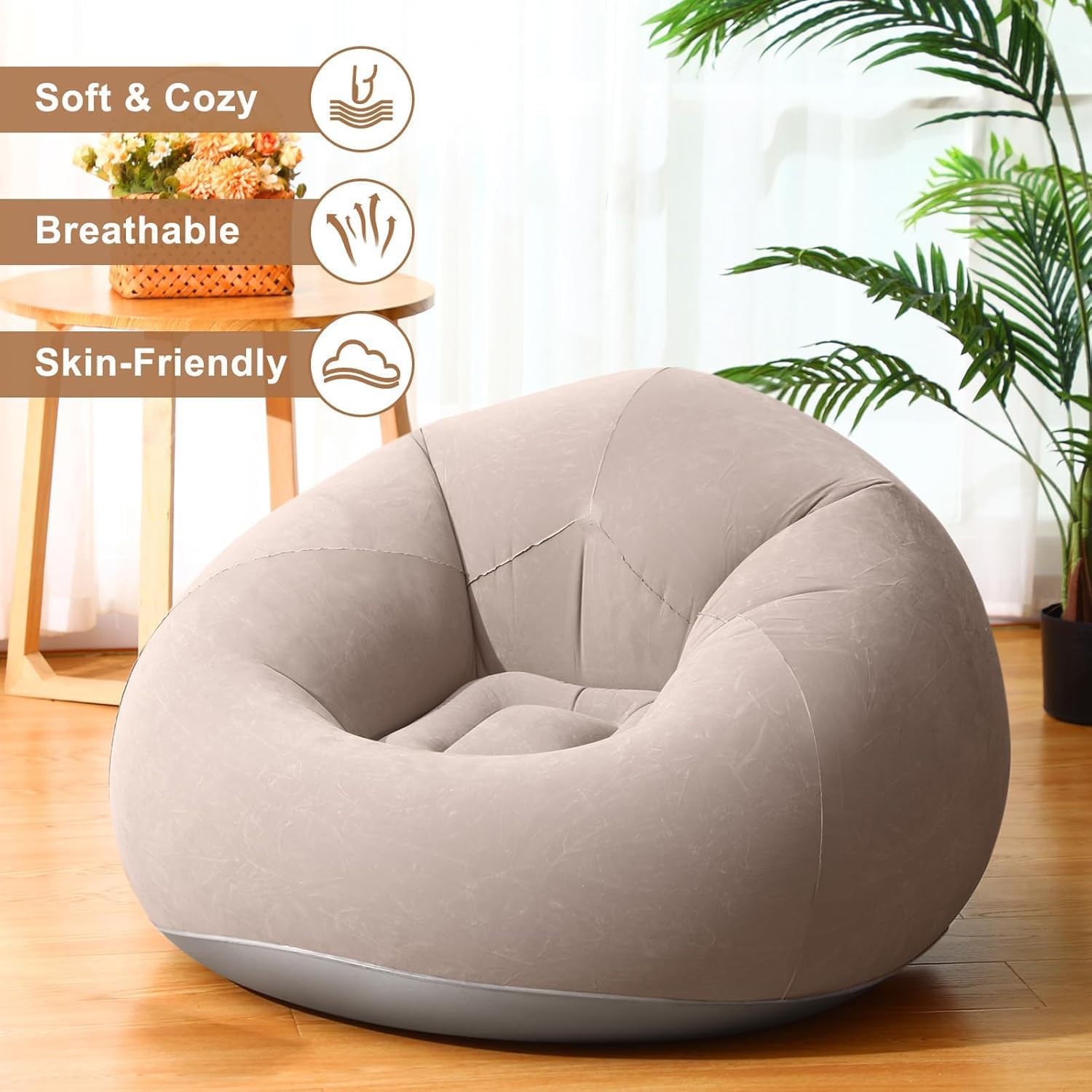 🪑【Air Lazy Couch Chair】: Our inflatable sofa bean bag is made from quality flocked PVC, which is the epitome of comfort and softness; This skin-friendly material makes it can withstand robust use, long long-lasting and not easy to break; This sturdy yet cozy blow up chairs will bring you more relaxing experience.