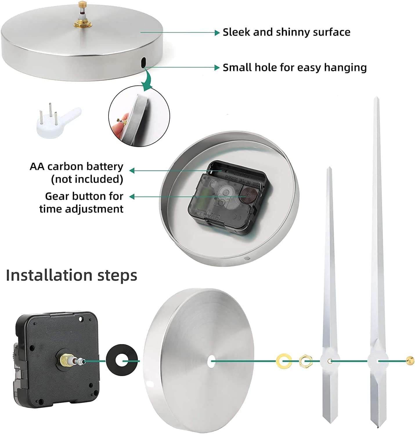 - Installation is a breeze with the included adhesive backing, allowing you to effortlessly attach the clock to your kitchen wall.