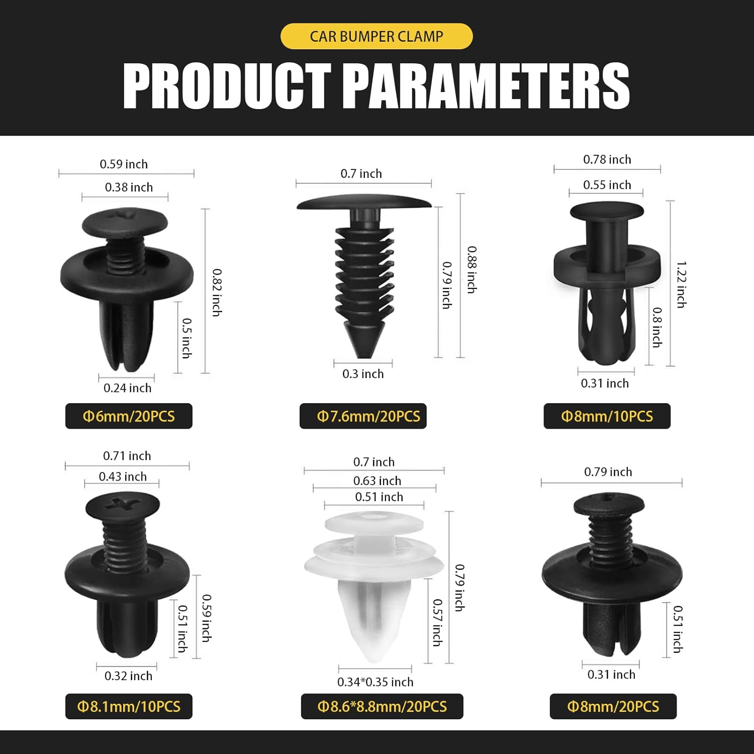๐ฉ Functionality: The fasteners come in various sizes (6.3mm, 8mm, 9mm, 10mm) to accommodate different needs. They are perfect for securing bumpers, fenders, and door trim panels, ensuring your vehicle components stay firmly in place.