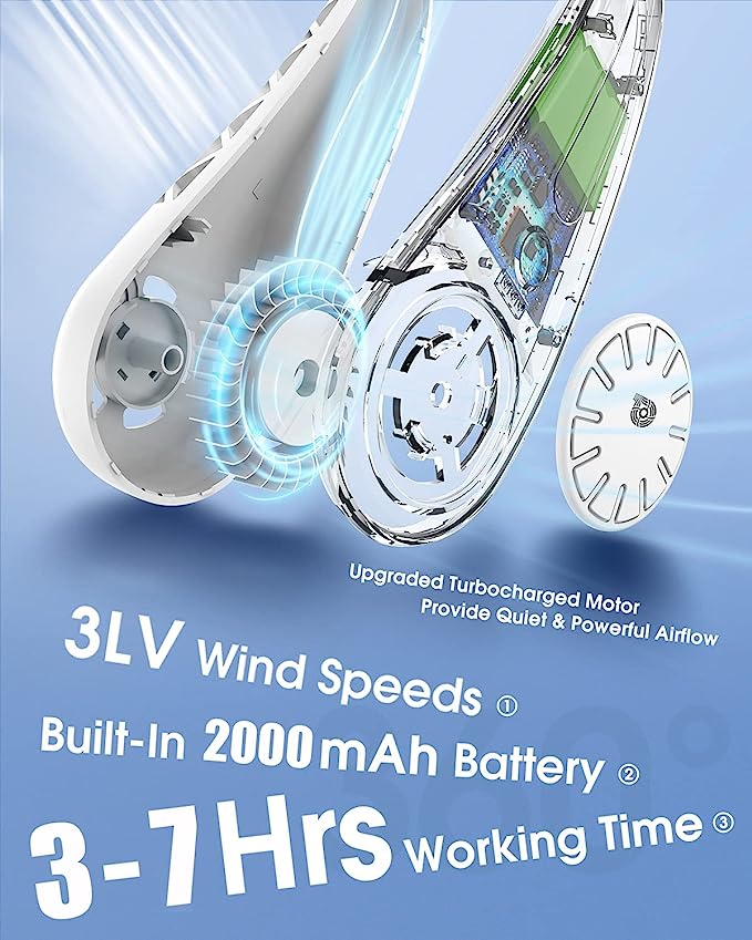 ☑【Bladeless Neck Fan】 While walking, you surely prefer to hang the fan around your neck, no more holding! What‘s more, when using the fan, you don't have to worry about your hair getting caught in the fan blades. It is perfect for indoor and outdoor activities