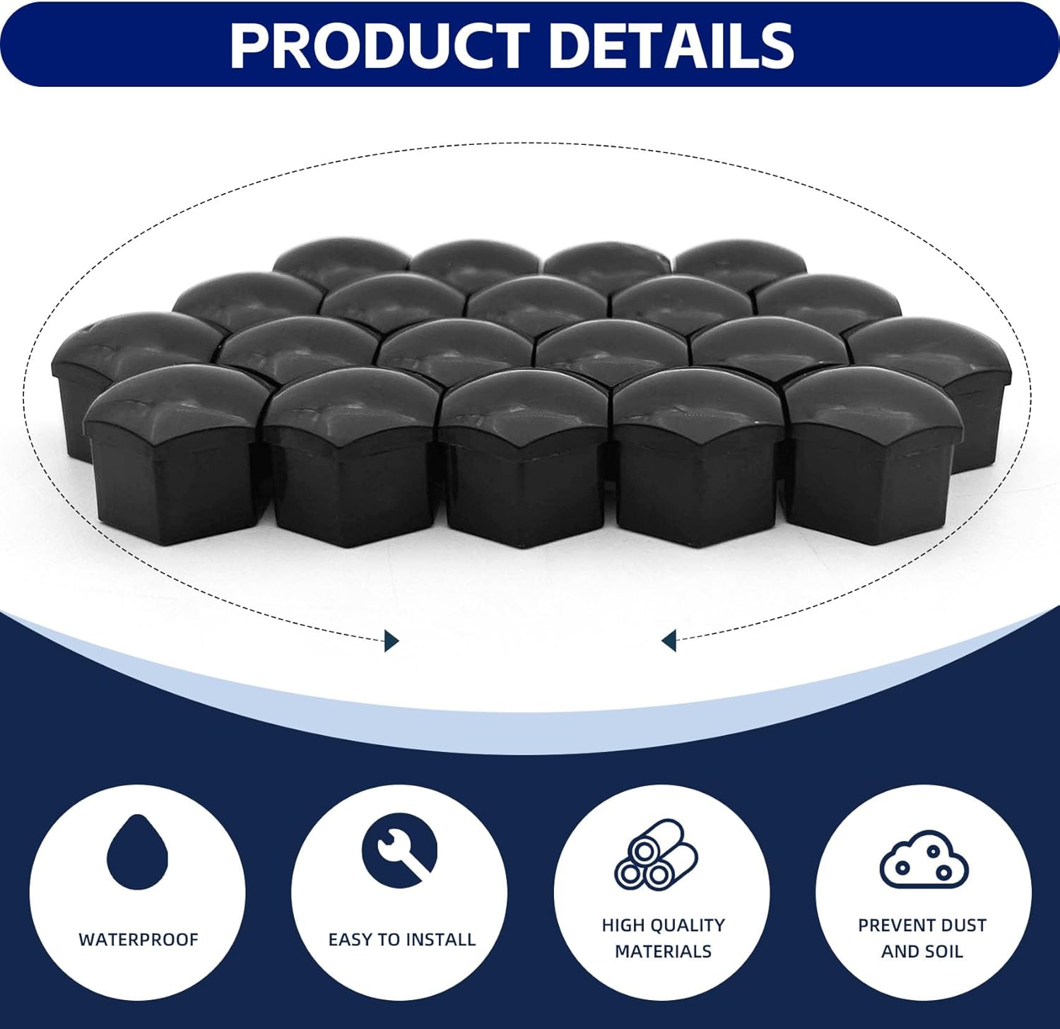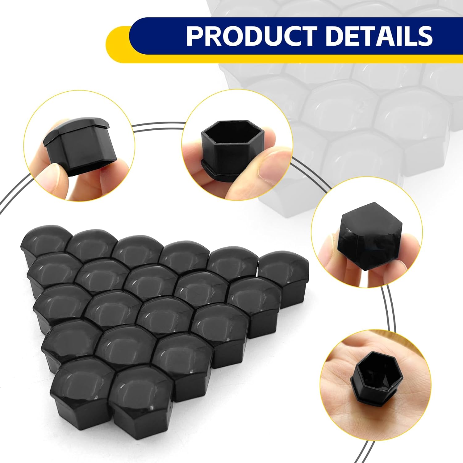 🚗【Package Contains】20PCS universal 17mm wheel lug nut covers and 1 cover removal tool.